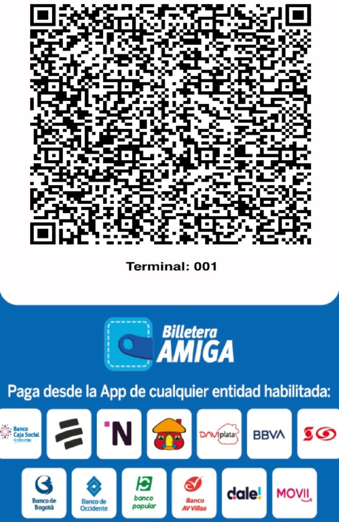 - Escanea el código QR que aparece a continuación con la cámara de tu celular o una aplicación de billetera virtual, Nequi, Daviplata o PSE